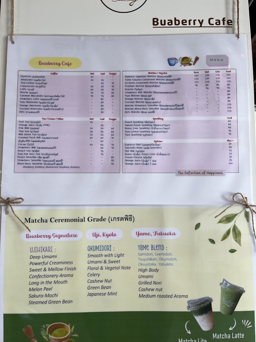 Welcome to Buaberry Cafe, a delightful gem nestled in the heart of Phra Nakhon Si Ayutthaya, Thailand. Renowned for its exceptional matcha offerings, this cafe creates an inviting atmosphere perfect for relaxation. Reviews highlight the superbly crafted matcha latte, rivaling even the finest in Japan, and delectable treats like the matcha banoffee and peach smoothie. Their warm and attentive staff enhance the experience, ensuring every visit feels personal and memorable. The charming decor, paired with a carefully curated playlist, makes it an ideal spot for enjoying quality time with loved ones or a quiet coffee break. Diners rave about the deliciousness of the hot lattes and cakes, reinforcing Buaberry Cafe's reputation as a top choice for both flavor and comfort. Whether you're a local or just passing through, make sure to indulge in Buaberry's unique offerings.